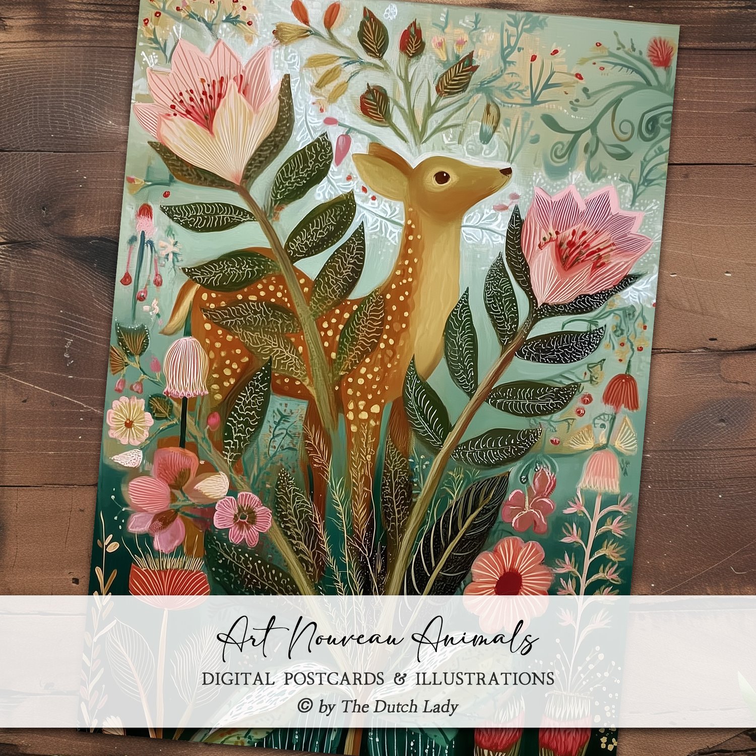 NOTE: if you have purchased my full shop bundle you will find this item in the folder DIGITAL PAPERS & POSTCARDS - POSTCARDS 2026 under number POST2026002 - Art Nouveau Animals.