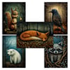 Dark Forest Animals Postcard and Poster Set - Digital Images