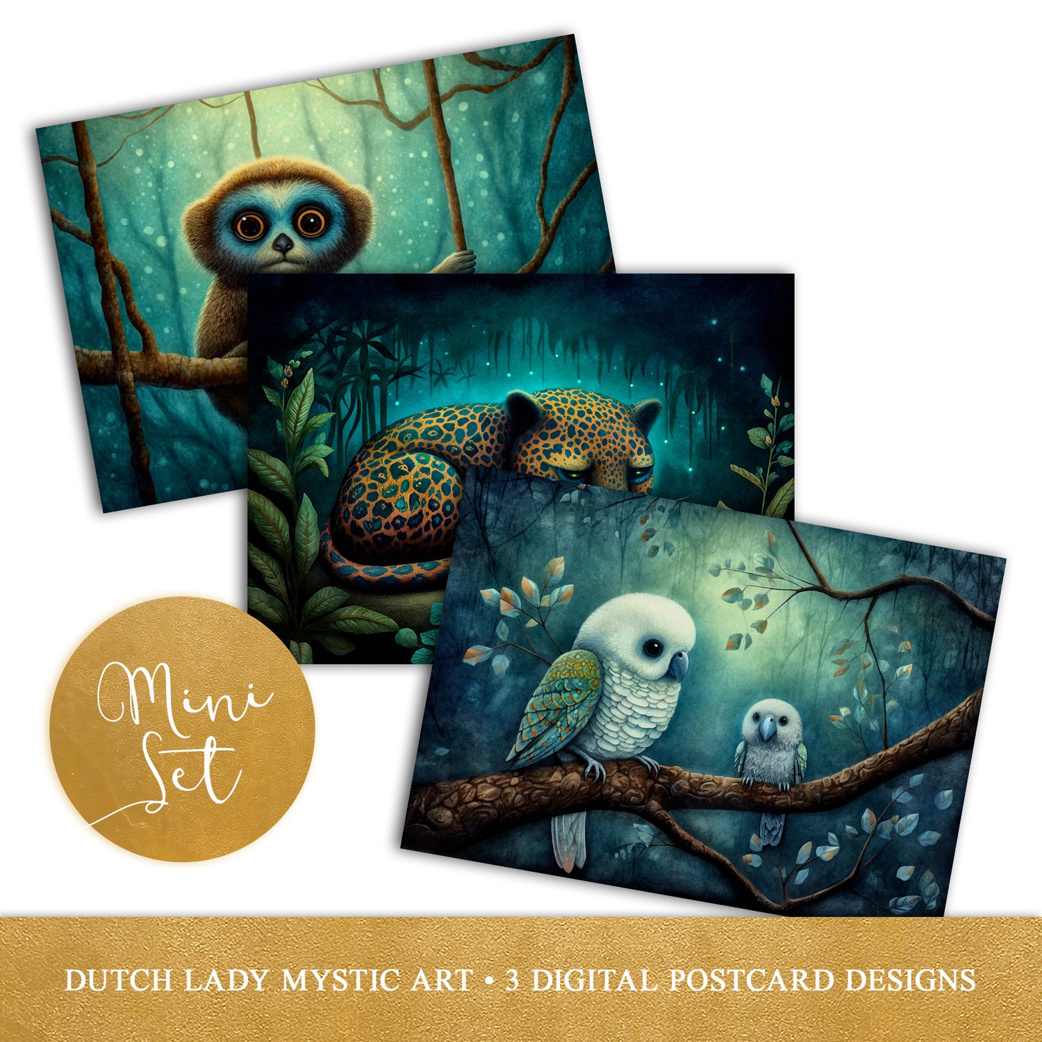 Dark Jungle Animals Postcard Mini Set - 3 Art Prints