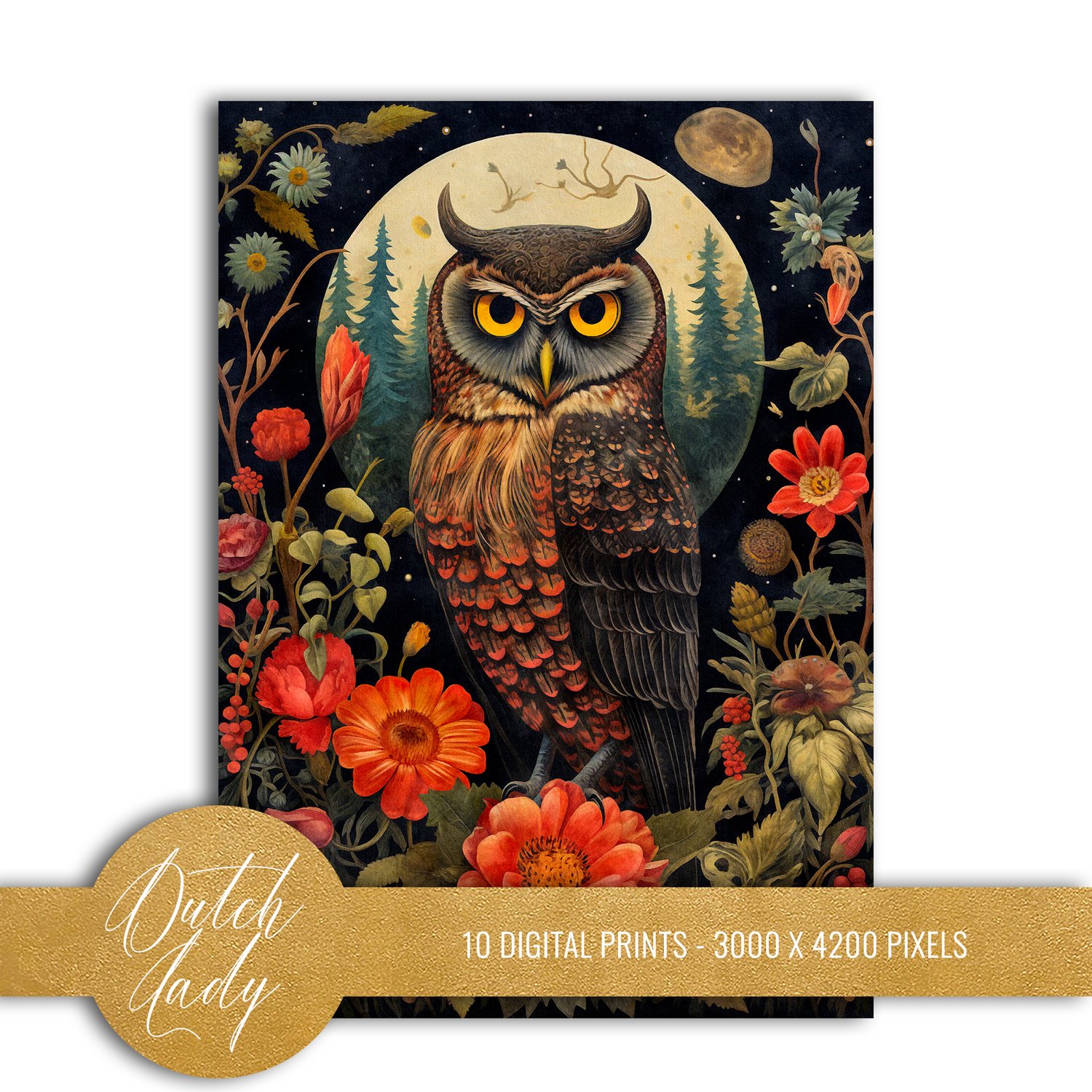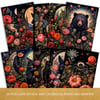 Gothic Botanical Animals Postcard and Poster Set - Digital Images