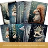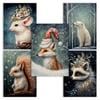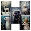 Mystical Christmas Animals Postcard and Poster Set - Digital Images